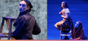 Slam Frank takes cultural diversity one step further, making Edith Frank black (Austen Horne), Anne (Olivia Bernábe) an ambitious LatinX teenager, Margot Frank (Anya van Hoogstraten) an observant Jew, and Otto Frank (Rocky Paterra) neurodivergent, covering a wide range of minorities. Mr. Van Daan (Andrew Fox) is a stereotypical white male, self-centered, macho, opinionated, and just takes up too much space.