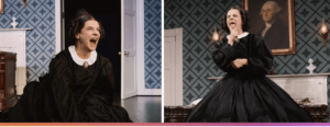 According to historical records, Mary Todd Lincoln was not a refined public figure, exhibiting mood swings and outbursts, likely due to mental illness and grief over her children’s death, this is the jumping off point for this show, a bitter woman, who turns to liquor as an escape from her tedious existence, egging Louise to reveal her fantasies, and flaunting them in her face. Sexual innuendos run rampant throughout the show, creating a non-historically accurate, tantalizing perspective of the personal life of Honest-Abe and his wife. It offers an unconventional theory, framing the 19th-century predilections of Lincoln’s private life in a 20th-century context, where sexual lines are blurred at best.