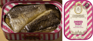 - Smoked Trout – is cooked and smoked, the bones are removed, and the fillets are cut to fit the can size.